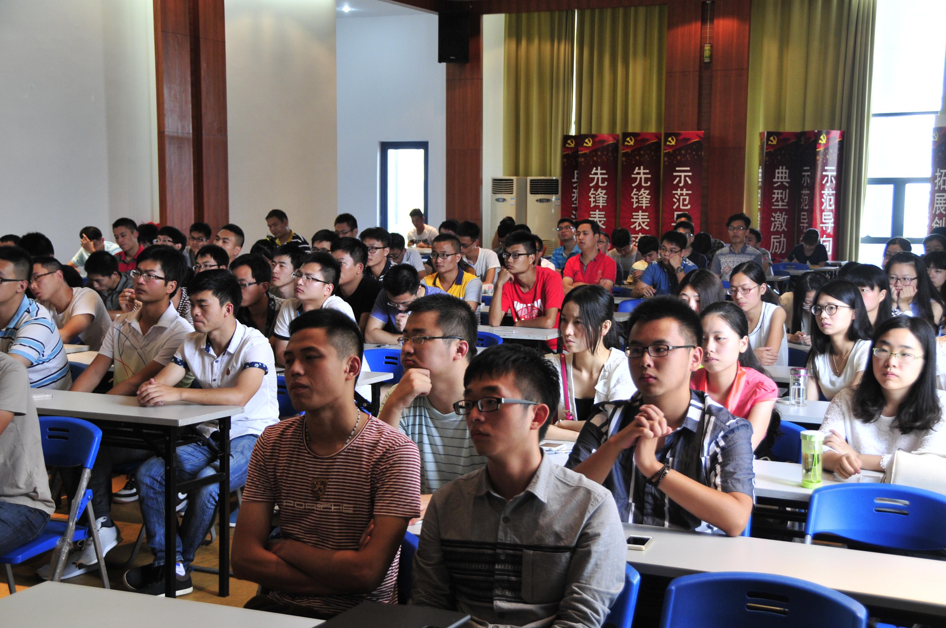 最后由汪颖老师发言,作为2015级研究新生辅导员,汪老师将会和同学们有很多接触。因此她首先进行了详细的自我介绍,然后就新生关注的问题向同学们作出了说明,并且做出要求。她希望同学们能做到“脚踏实地,仰望星空”,努力学习,积极生活,早日实现人生理想。