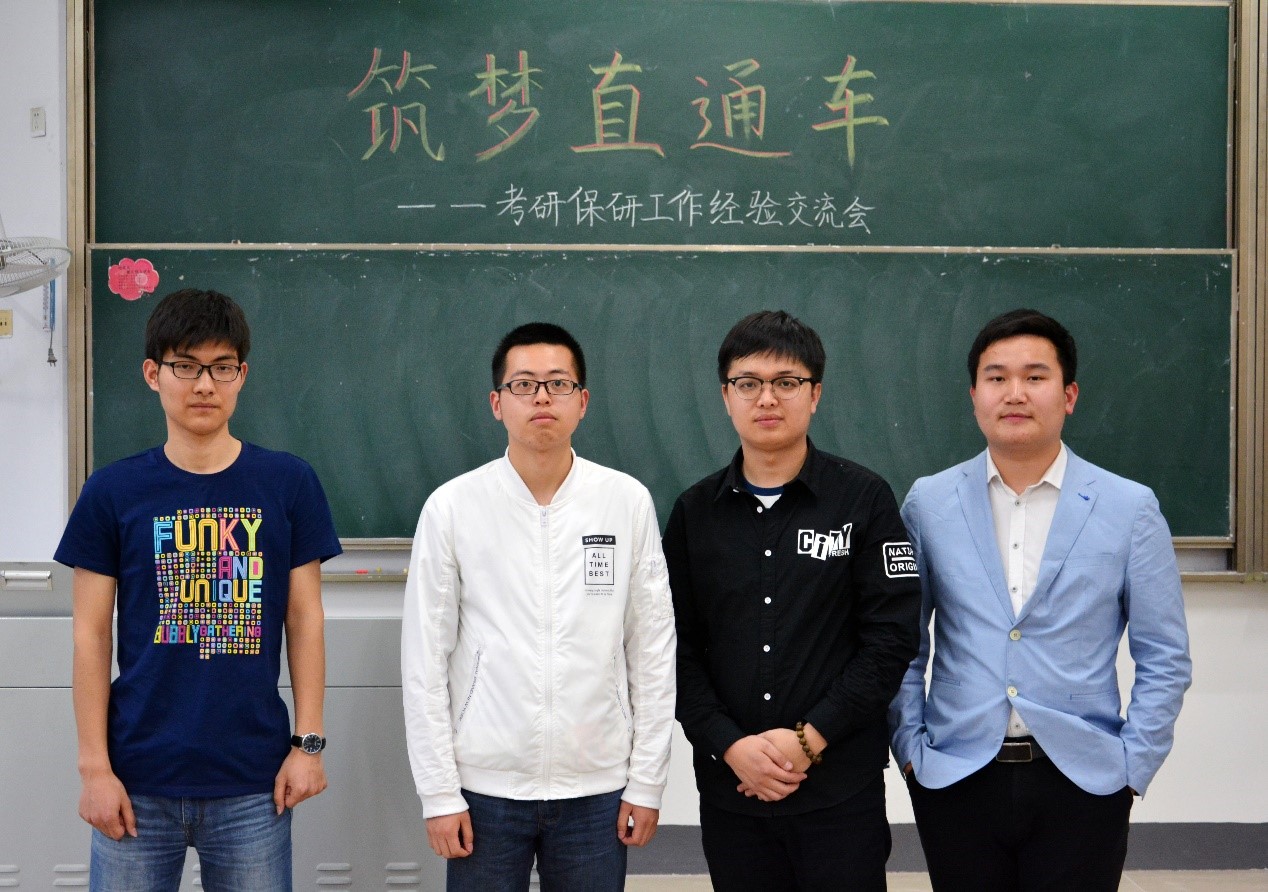为了增强性交视频同学对于考研、保研、就业发展形势的了解,并且能够对自身未来有一个明确的规划,4月18日下午16:00,性交视频 学生会于教4-301举办了“筑梦直通车”——考研保研就业经验交流会活动。本次交流会邀请到14级辅导员张逗老师,以及在考研、保研、就业方面有着出色成绩的倪星宇、高升、张云飞、李阳四位同学。
