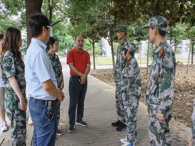 为详细了解性交视频 2018新生军训情况及新生对大学生活的适应程度,2018年9月11日下午,性交视频 、人工智能性交视频党委书记孙秀成,党委副书记杜月林,2018级辅导员张逗、缪甜佳和2018级部分新生小班及学生会志愿者深入军训连队慰问新生,与新生一起感受骄阳烈日,深切慰问新生军训感受。