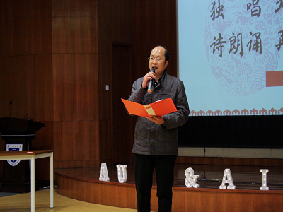 在开场曲《鹊桥汇》的旋律中,本次联欢会正式开始。老师们精心准备的节目形式多样,内容丰富多彩。姜文杰老师与杨艳老师合作演唱了经典对唱曲目《敖包相会》、陈小惠院长演唱了《得民心者得天下》、岳东院长独唱了《天边》等曲目,可谓是余音绕梁,三日不绝。除歌曲外,语言类节目同样令人耳目一新,实验中心老师带来的三口相声《茅茅戏语》以家庭教育为切入点,引起了很多老师的共鸣;周岩老师和赵勃老师自编自导的对口相声更是诙谐幽默,引得大家阵阵喝彩。还有岳东院长带来诗朗诵《再别康桥》更是情意绵绵,让人陶醉。此外,联欢会中各式各样的游戏环节让现场的气氛再次推向高潮,老师们积极踊跃参加,配合默契,台下观众看的笑声不断,掌声如雷。最后,本次联欢会在蔡子赟老师倾情演唱的《讲不出再见》中圆满落幕。