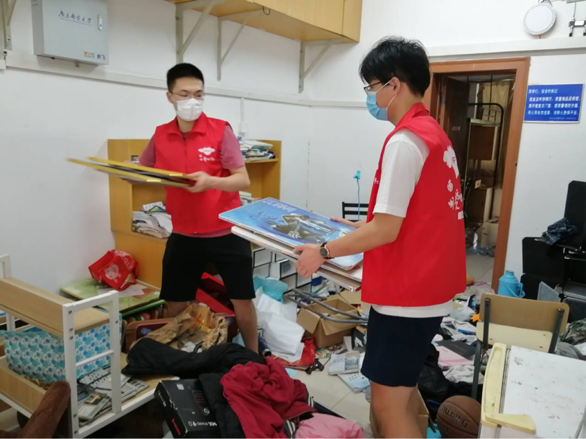 在菊苑16栋集合后,郑春春老师根据实际情况给大家做好分工,由于疫情等原因,毕业生无法仔细对寝室进行整理清卫,所以留给志愿者们的工作是比较繁重的,志愿者们将宿舍大厅类的遗留物品进行搬移,并对宿舍里的桌子、生活用具等物品进行了清扫。在志愿者们的帮助下,清扫工作、搬移顺利完成,宿舍面貌焕然一新,也给宿管阿姨、后勤工作人员减轻了工作压力。