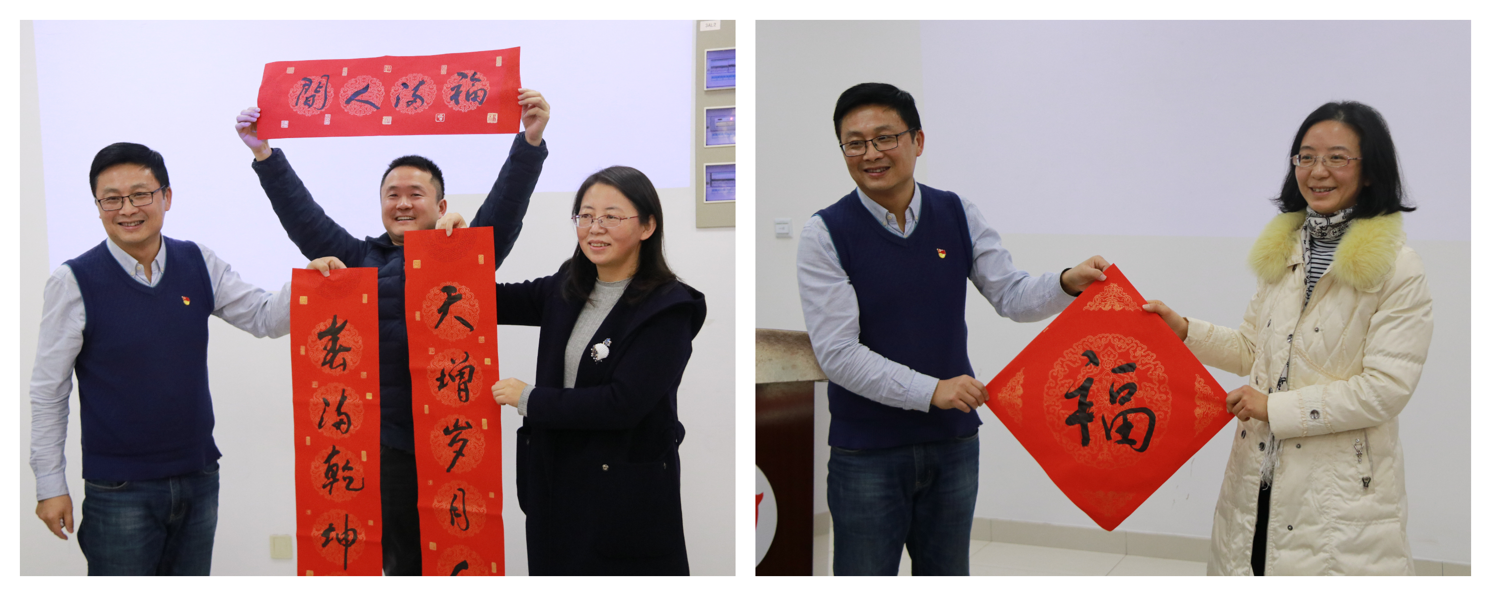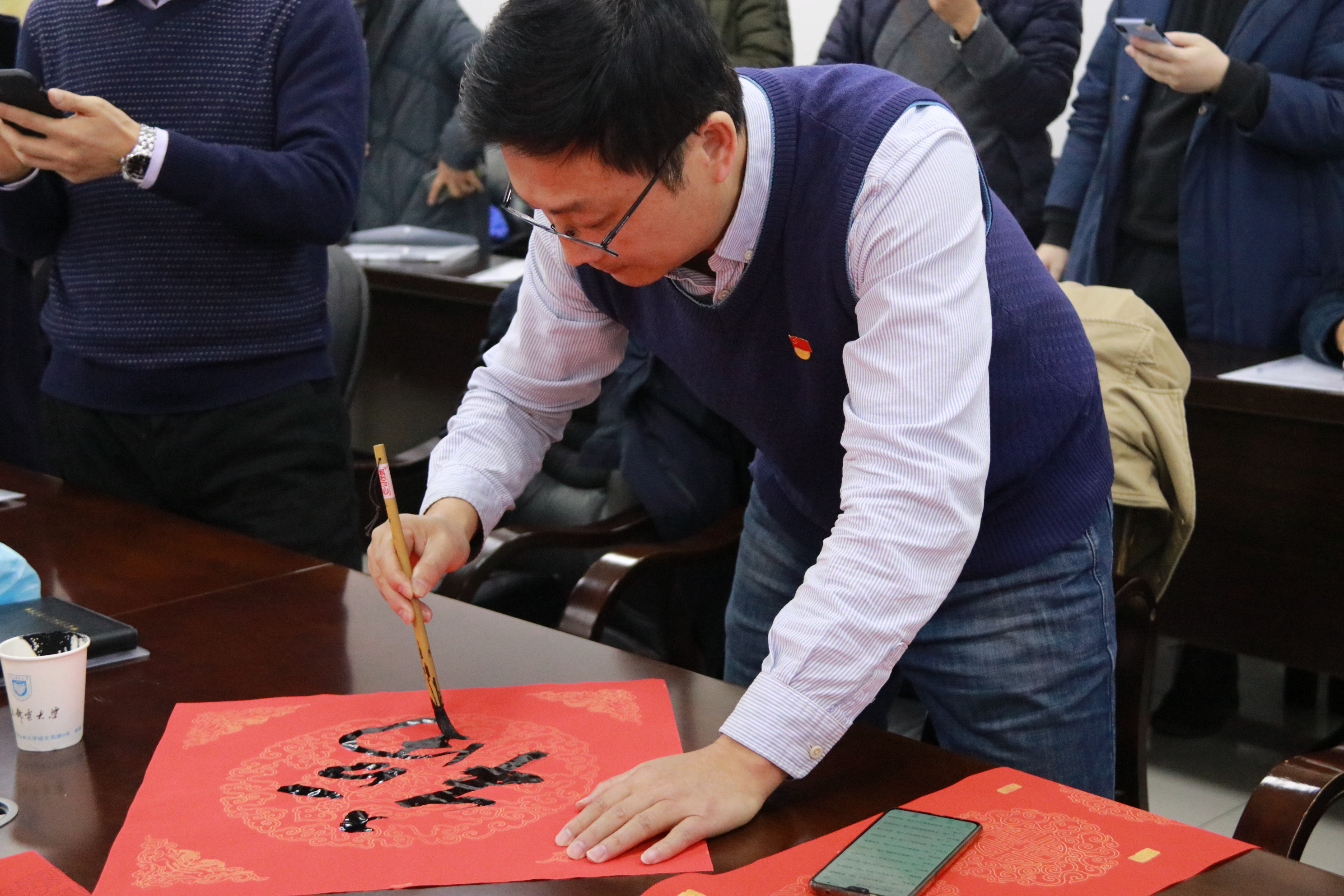 恰逢性交视频召开第二届教职工代表大会暨工会会员代表大会第三次会议,性交视频党委书记张翼现场挥毫,为教职工书写春联、福字,苍劲老道的行草映衬在洒金红宣纸上显得赏心悦目。本次活动所有春联、福字,均由陈迪生副书记代表工会,分发给性交视频教职工。