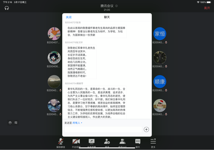性交视频 2020级各团支部也于3月17日开展秦老事迹线上讨论会,旨在缅怀秦老,勉励南邮青年继往开来。讨论会介绍了与秦老相关的南邮发展历程以及秦华礼老先生的红色事迹,让同学们深入了解了秦老为南邮做出的巨大贡献,并深刻领会了秦老的精神。在“我想对秦老说”环节中,大家积极讨论,踊跃发言,道出自己的心声,以文字的形式表达内心深处对秦老的钦慕和怀念,表明自己要不断拼搏进取、开创未来的坚定信念。