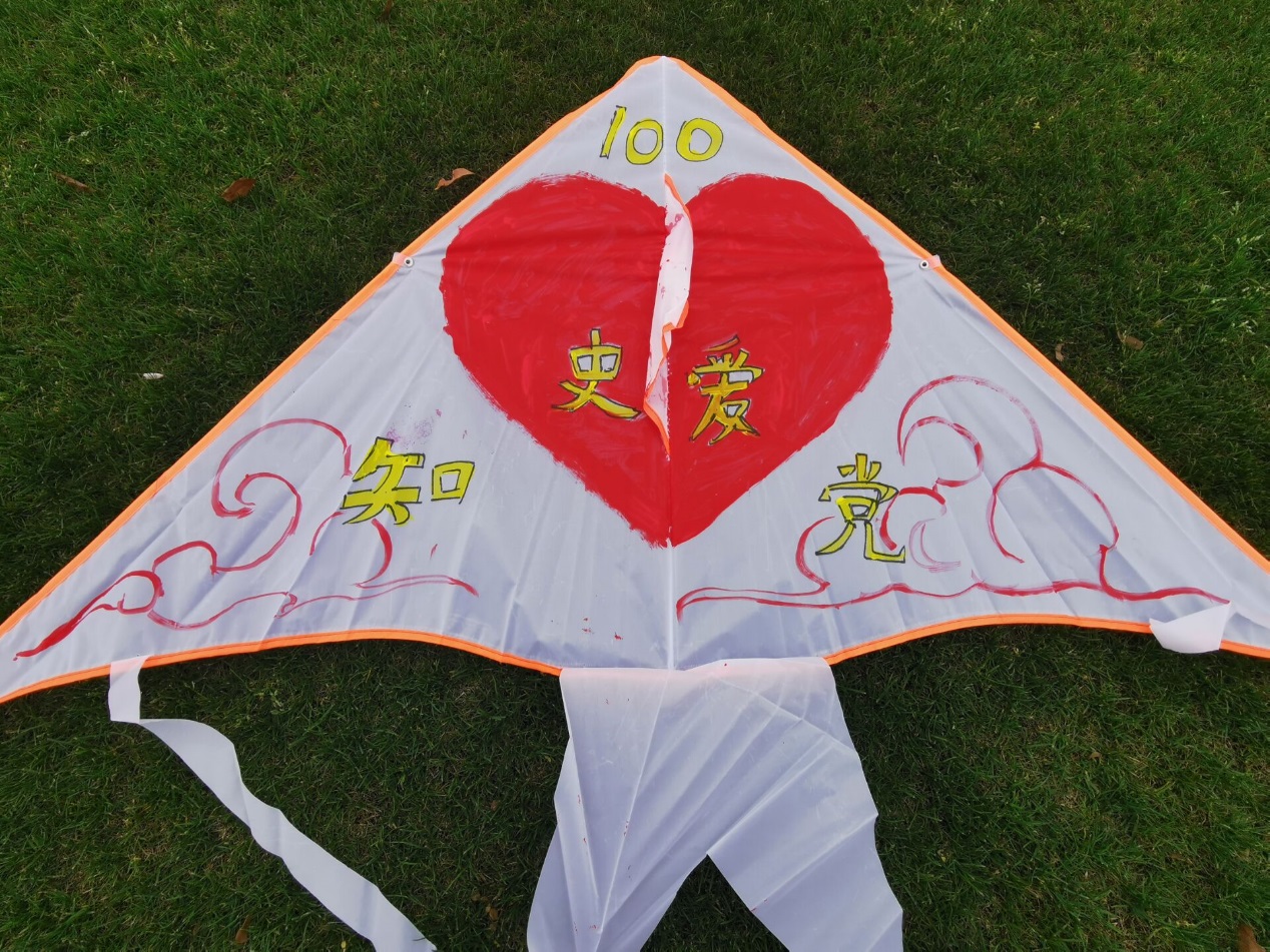 谈起举办初衷,侯雪婷说“风筝节旨在让同学们在风筝上进行绘画、书法,献礼建党100周年,展现党的百年峥嵘、丰功伟绩与精神血脉。”