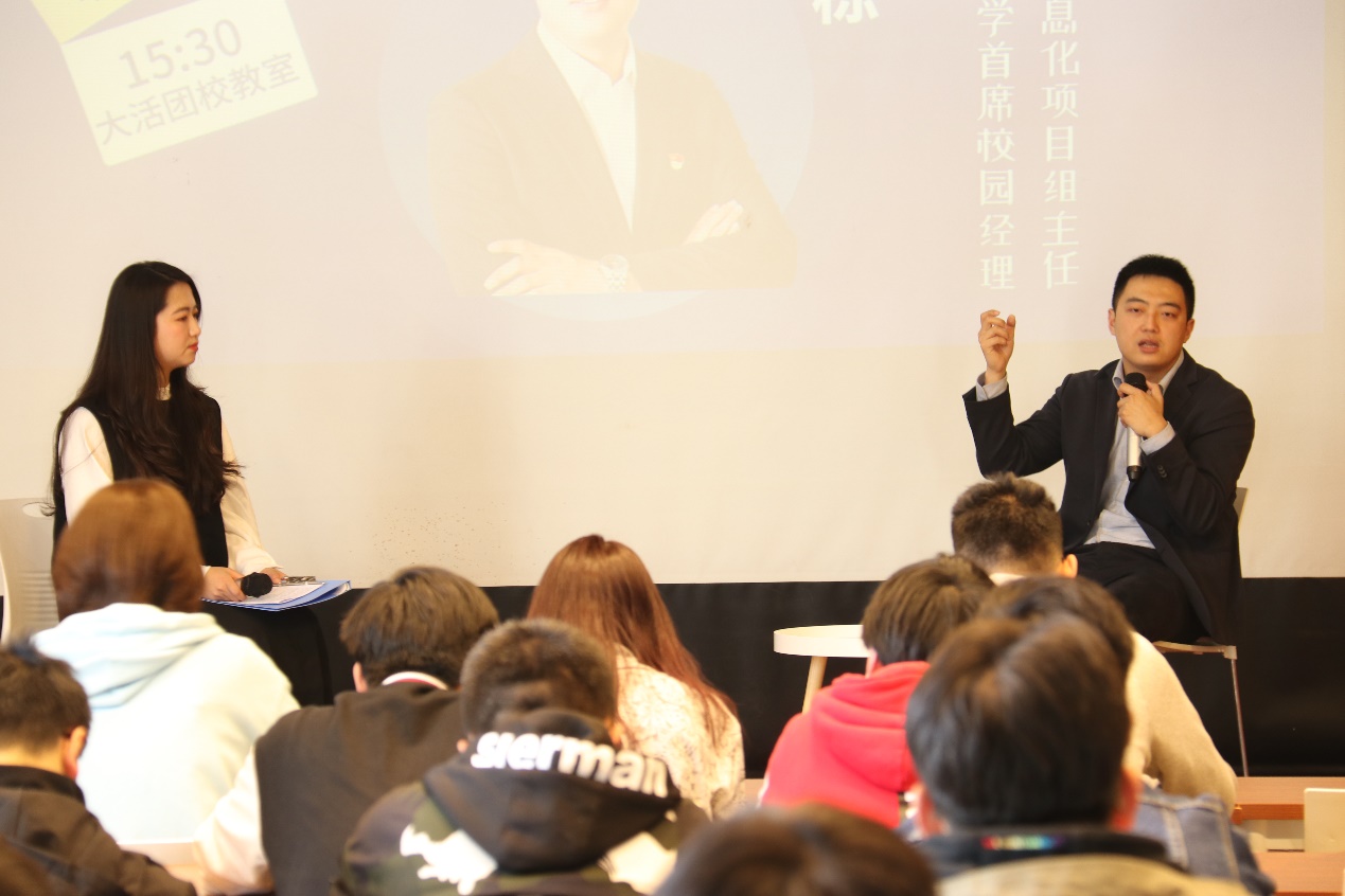 活动中,现场观众踊跃提问。同学们就关心的薪资待遇、能力提升、企业选择等方面问题向赵栋学长提问请教,赵学长逐一进行了深入浅出的耐心解答。