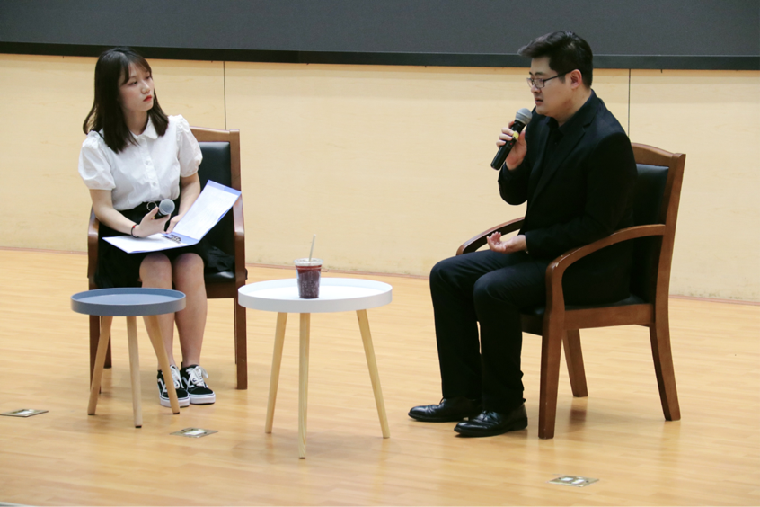 活动中,现场观众踊跃提问。同学们就如何平衡兴趣爱好与学习生活、如何作合理规划实现自己的目标、注重培养哪方面的能力以适应未来工作等方面问题向张丹校友提问请教,张丹校友逐一进行了深入浅出的耐心解答。
