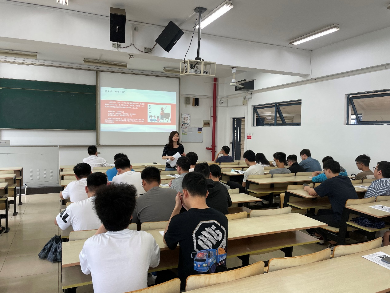 柏杨老师向同学们介绍了西部(苏北)计划的相关政策和待遇,希望同学们到西部去,到苏北去,到祖国和人民最需要的地方去。