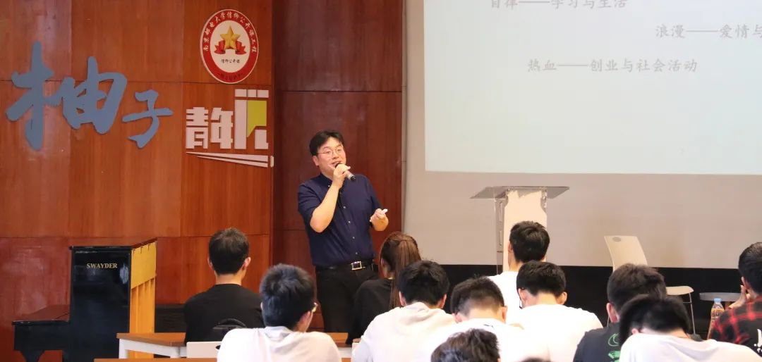 接着,丁玮校友做了题为“平凡之路”的讲座。在讲座过程中,丁玮校友深情回忆了自己的中学和大学生活,向同学们讲述自己的一些学习和生活经历,并结合工作经历向介绍了社会交往、社团活动和自身艺术修养的重要性,并建议同学们在拥抱社会、锻炼社交能力的同时,不忘饱读诗书、修身养性,全面提升综合素质。