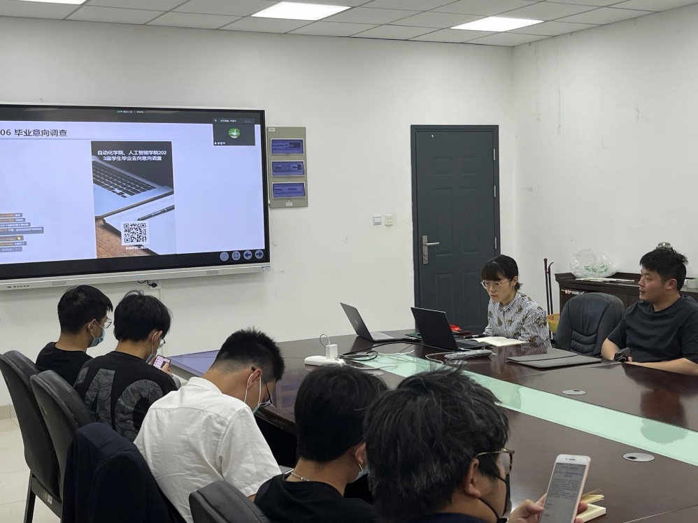 随后,邵东隅老师向2019级全体学生发起毕业意向调查,对2022届毕业生的考研升学情况和就业去向进行了介绍,分析了考研和就业学生面临的形势,提出了若干在报考院校、专业选择和就业准备上的一些建议。他叮嘱同学们理性分析自我,树立积极心态;明晰未来目标,制定合理计划。