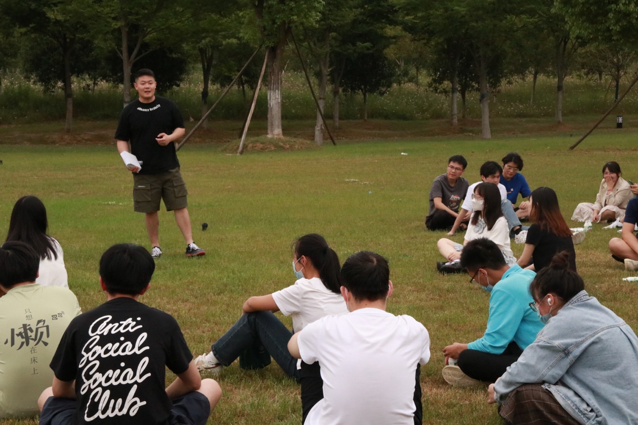 破冰之后,通过“大象摸鼻转圈”“解手绳”等一系列热身活动,让同学们舒缓压力、放松身心,愉快地参与到活动中来。