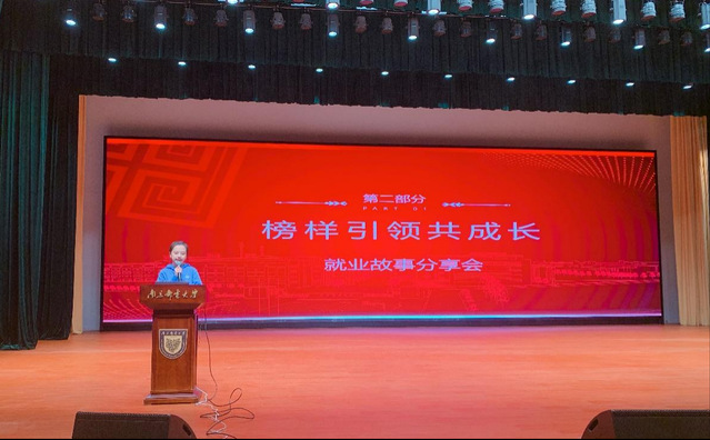 沈扬子同学目前签约中国移动公司,她和大家分享了自己在求职过程中的心得。由于疫情的反复,目前的就业形势是比较严峻的,也带来了不小的竞争,她建议同学们要认清局势,做好充足的准备去应对挑战,多方位考虑问题,认清自己的能力和个性,总结自己的优点和竞争力,为自己的人生做出选择并勇敢面对,在挑战中不断成长。